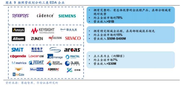 统计数据表明,EDA头部企业垄断了全球90%的市场份额。按照市场份额划分,全球EDA企业可以分为三个梯队。