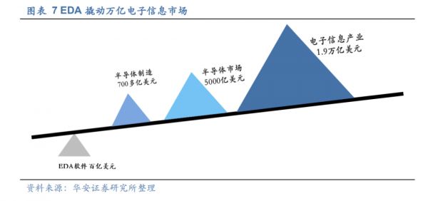 根据市场规模测算,全球EDA的市场规模仅百亿美元,而这区区百亿美元却撬动了5000亿美元的半导体市场,显而易见EDA软件的价值早已经超出了他们业绩本身。