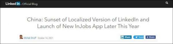 10月14日,也就是昨天,有媒体报道称微软将关闭领英中国,取而代之的是在中国推出专精求职的软件InJobs,该网站不计划设计领英的社交及分享功能。