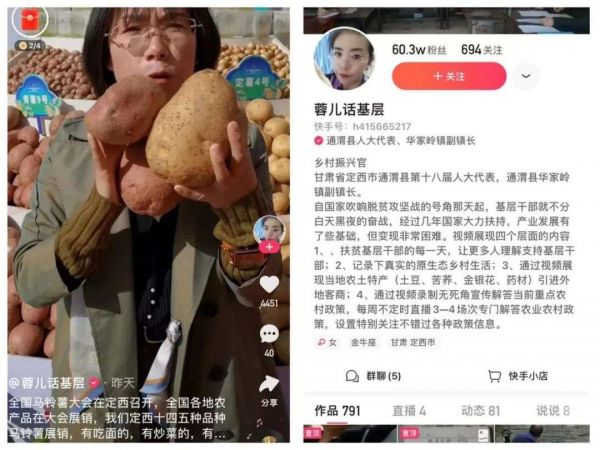 舅妈的初中同学家里做视频,通过快手卖一些粉条和土豆淀粉,确实增加了不少收入,甚至还被县上评为了电商模范。还有一些乡镇的基层干部也开通了快手账号,播放量非常高,可见快手的下沉做的还是有一套。