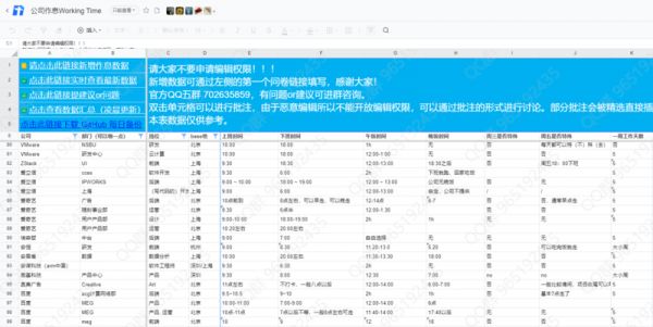 在表格成型的最早期,这些公司信息更多服务于那些和他们一样的应届求职者,创建的第一个Q群名字也是:秋招作息交流群。