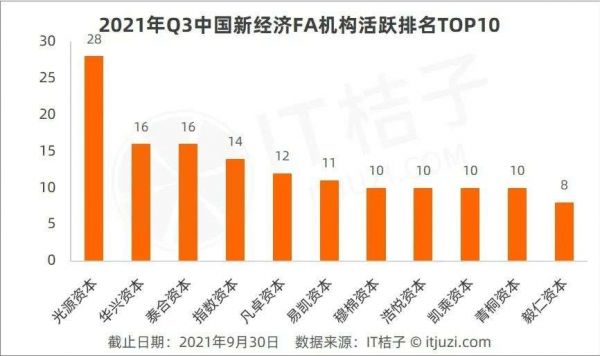 根据不完全统计,2021 年第三季度华兴资本错失了 FA 头牌,光源资本以促成融资交易数 28 笔拔得头筹(其中海外融资有 2 笔),排名从上季度的第 5 名升至 Q3 第一名。Q3 华兴资本成功为 16 家新经济公司提供融资顾问服务,位居第二。排名第三的泰合资本 Q3 促成交易 16 起,环比增加 4 起。指数资本以 Q3 促成 14 起交易数位居第四,环比增加 2 起。