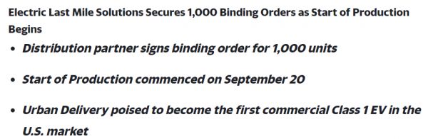 但是ELMS是一家很小的美股商用车公司,不到10亿美元,做最后一公里的业务。从外网的消息来看,ELMS最近的订单是1000辆商用车。