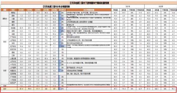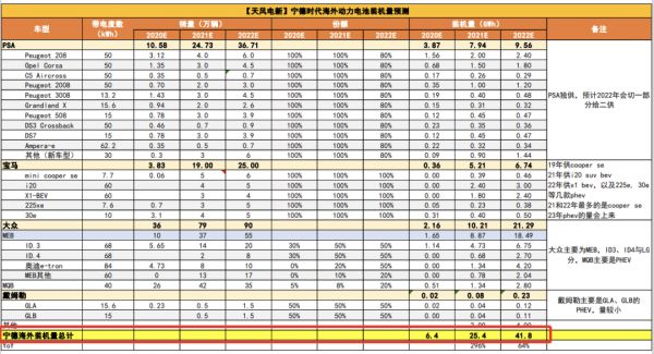 这是天风关于宁德国内和海外乘用车出货量的预期,挺详细的了。