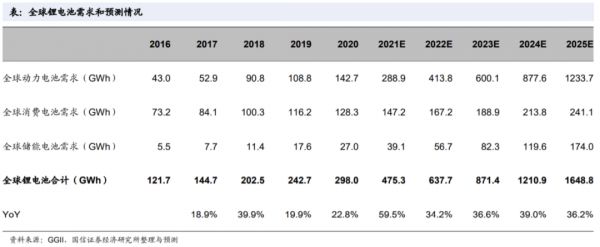 产能规划:宁德时代目前已公告产能扩建规模近600GWH(独资+合资),预计25年产能规模将超1TWH。单GWH电池需求磷酸铁锂2300吨,高镍三元正极1600吨,负极材料750吨。
