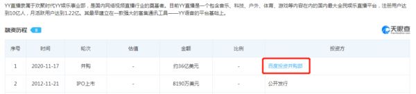 据天眼查APP显示,百度并购YY直播的金额高达36亿美元,这是百度自成立以来最大手笔的并购案,如此大的手笔足以表明百度对于直播的重视。