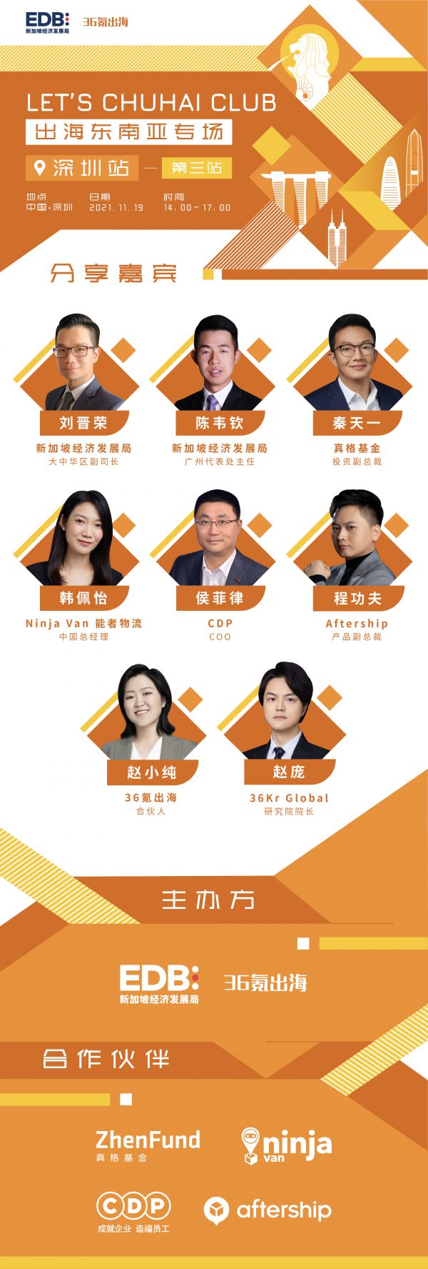 新加坡经济发展局(经发局 EDB)是新加坡贸易与工业部属下的法定机构,负责规划新加坡经济战略,旨在加强新加坡作为全球商业,创新和人才中心的地位。在今年,为了进一步促进东南亚与中国的市场交流与合作,经发局 EDB联合36氪出海共同举办“LET'S CHUHAI CLUB-出海东南亚系列沙龙”活动,旨在架起两地新经济生态桥梁,助力企业全球化发展。