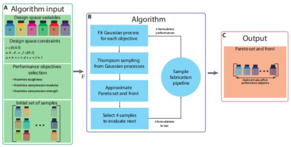 然而,新 3D 打印材料的开发目前依赖于聚合物化学领域知识和广泛的试验才能发现,这限制了材料开发的效率和可扩展性。且当下 3D 打印材料普遍一次使用一个性能因素进行设计和优化,这种方法通常需要测试过多的样本,产生大量浪费和不良的环境影响,却并不能找到最佳解决方案。