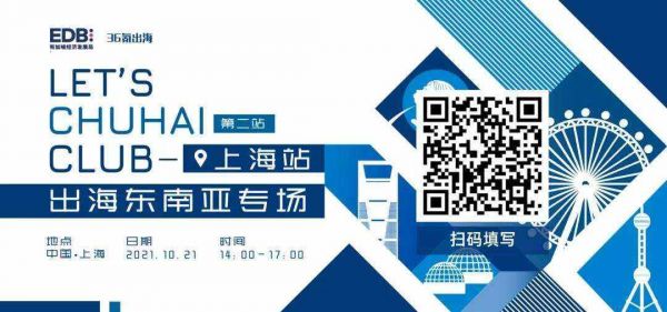 10月21日,由新加坡经济发展局与36氪出海联合主办的“LET'S CHUHAI CLUB-出海东南亚系列沙龙” 第二站来到中国消费品牌创新聚集地,企业服务智能制造实践先锋 - 上海。本次活动将围绕消费品牌全球化及企业服务助力产业升级等热门话题展开深度分享交流,共同聚焦出海东南亚的红利与挑战。