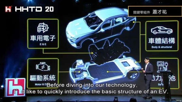 在今年鸿海科技日上,鸿海集团创始人郭台铭将一辆电动汽车开到了现场。
