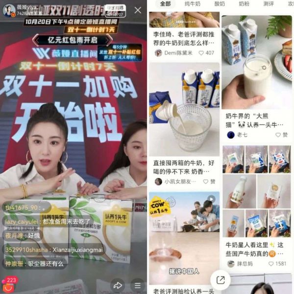从最初的私域流量积累销量,认养一头牛开始频繁出现在各大主播的直播间。例如认养一头牛的纯牛奶、酸奶、奶粉,都是薇娅直播间的常客。
