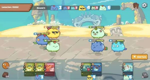 从游戏玩法来看,Axie Infinity类似于回合制策略游戏,玩家可以在游戏中收集、繁殖、战斗和交易名为“Axie”生物,目标是获取AXS(治理代币)和SLP(代币)报酬。