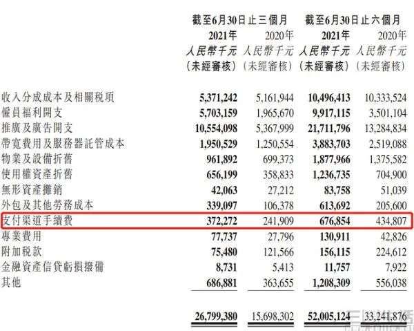 而快手之所以要做支付,最直接的原因其实已经写在了他们的财报中。在快手方面公布的2021年第二季度财报中,除了交出季度营收191.4亿元、同比增长48.8%,毛利润84亿元、同比增长89%的成绩外,他们在财报中也已披露,快手电商交易总额已达1454亿元,其中快手小店的占比高达90.7%。为此,截至2021年6月30日止的六个月里,快手在支付渠道的手续费开支为6.76亿元。