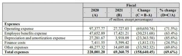 在OYO的费用支出中,运营费用占比最高,其次是雇员费用支出和其他费用。2018、2019、2020财年运营费用分别537.26亿卢比、973.78亿卢比、277.27亿卢比,占总费用的比重分别为60.99%、42.71%、39.98%。招股书称,运营费用的降低主要是由于自主运营和合作开发等方式导致租赁成本的下降。