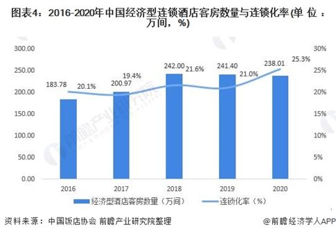 前瞻产业研究院数据显示,从全国酒店业整体连锁化率情况来看,近年中国经济型酒店业连锁化率还处于较低水平。2020年,全国经济型酒店的连锁客房数是238万间,非连锁客房数是704.3万间,连锁化率为25.3%。对比欧美成熟市场60%-70%的连锁化率,中国经济酒店连锁率还有很大的提升空间。