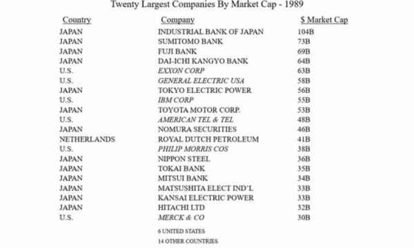 当然,日本的后续大家也知道了,日本经济在90年代初股票和房地产泡沫相继破灭,随后便经历了“失去的三十年”,这也都是后话了,到2021年Q1,全球上市公司市值TOP20中,有13家为美国公司,腾讯、阿里、台积电、茅台四家中国公司入榜。