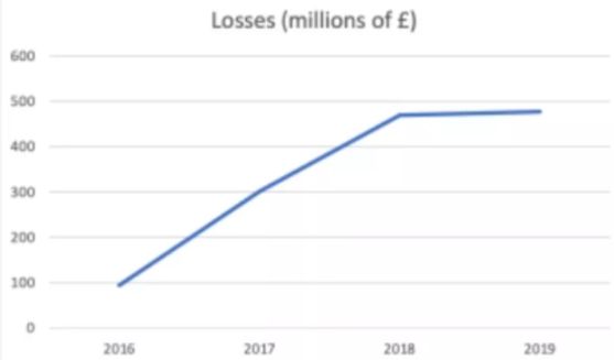 2018年亏损4.702亿英镑 ,同比去年增幅达56%。