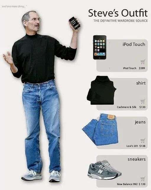 拥有100件同款黑色高领衫的乔布斯,与其背后的时尚品牌三宅一生[7] (ISSEY MIYAKE)的故事一直被人津津乐道,这种“极简主义”也影响着日后的苹果产品。