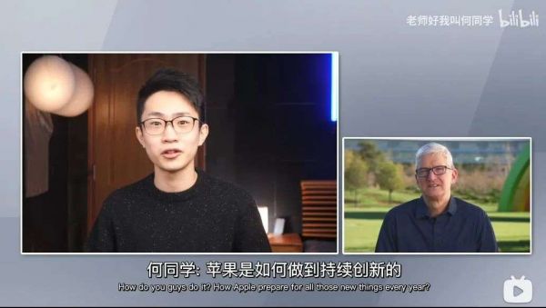 而真正让何同学“走上神坛”,还要说是今年二月,与苹果CEO库克的那次对话采访。