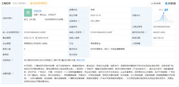 天眼查显示,何世杰(何同学本名)于今年8月16日创立了杭州何同学文化传媒有限公司,认缴资金5万元,主营项目为广播电视节目制作——也就是自媒体。