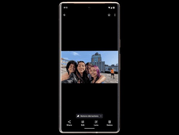 其他的功能比如Magic Eraser(魔术橡皮),当有其他人误入镜头,系统将在识别出那些可能不应该出现的人或事物后,向你提出“删除”建议,此时你可以选择在系统的提示下轻按删除。当然,你也可以在其他时候手动选择要删除的内容。