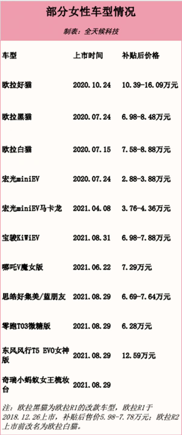 且由于该细分领域门槛较低,车企进入相对容易。毕竟相较男性汽车市场,女性对配置、性能等方面考虑较少。