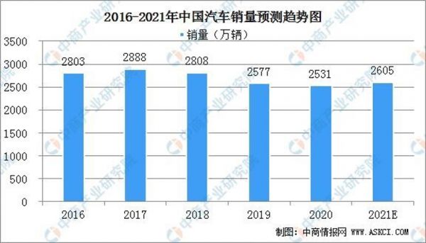 根据汽车工业协会数据,中国汽车市场在近几年呈现增长放缓甚至下降趋势。从近6年的数据看,2020年或是中国汽车市场的峰底年份,虽然2021年汽车销量有望超过2600万辆,实现恢复性正增长,但要回到此前2800万辆之上的水平,仍有一定难度。