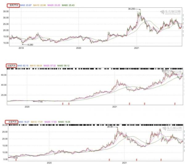 图 / 汽车自主三强股价走势,东方财富网