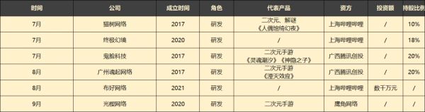 在Q3,有6家具备二次元内容研发能力的企业拿到了钱,资方为腾讯、B站和鹰角。