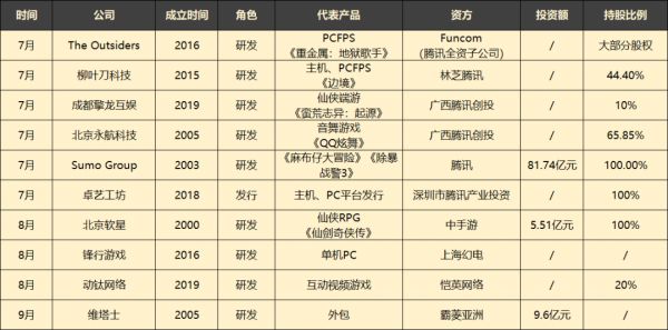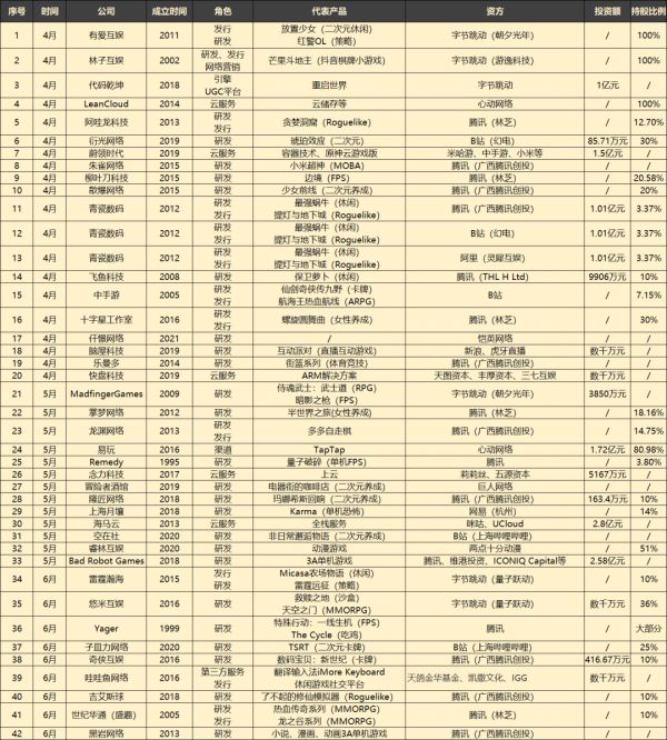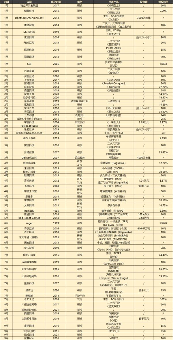 和上半年相似,腾讯这三个月投的主要还是有研发能力的公司,持股比例多在10%以上。二次元、女性向、多平台的内容和发行能力,是他们想要的。
