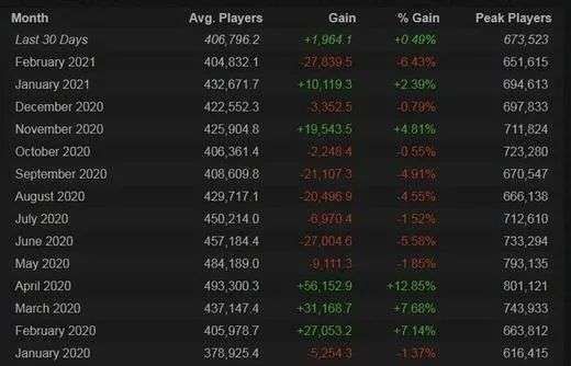 从去年5月开始,DOTA2的玩家数量就在一直走低,在今年2月份的DOTA2活跃玩家数量创下了13个月以来的最低水平,