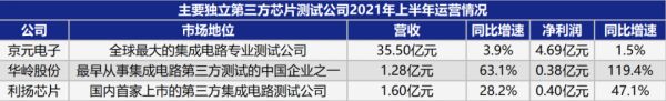 虽然利扬芯片和华岭股份的营收规模远远落后于世界龙头公司京元电子,但在业务成长性方面,则显示出超强的成长力,上半年分别同比增长63.1%和28.2%,远高于京元电子3.9%的营收增速。