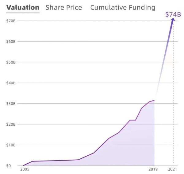 在全球疫情阴影笼罩之下的过去两年里,SpaceX在业绩上不仅完全没受负面影响,倒像是坐上了自家的火箭飞船一般,从2019年的320亿美元涨到了如今的740亿美元,估值暴增400多亿美元。