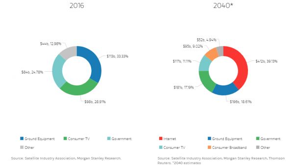 摩根士丹利(Morgan Stanley)的航天团队估计:在短短20年后,也就是2040年,现在市场价值约3500亿美元的全球航天工业可能会激增至超过1万亿美元。