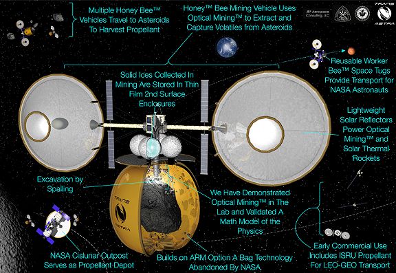 直接去比较大的小行星(几百米直径、甚至几公里直径的小行星),在小行星低重力环境下开采重金属,也就是小行星挖矿。