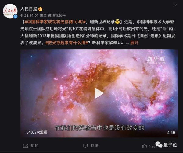 今年6月,他所带领的量子计算团队打造出“量子U盘”,将光信息存储在特殊晶体中1个小时,被新华社、人民日报等各大媒体转载,登上热搜。