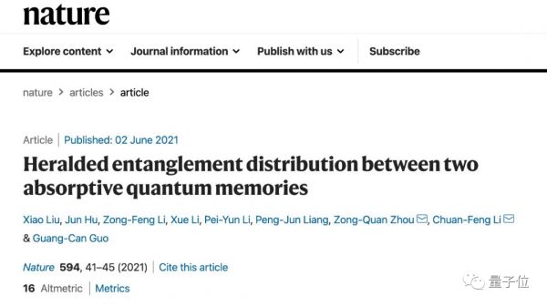 今年除了“量子U盘”外,郭光灿团队的另一篇量子计算研究成果也登上了Nature:他们利用固态量子存储器和外置纠缠光源,首次实现两个吸收型量子存储器之间的可预报量子纠缠。
