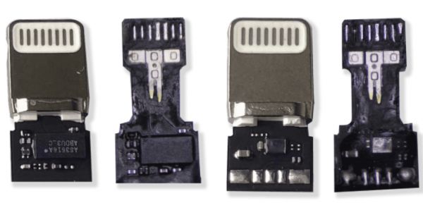 然后,Pillonel 制作了一个 Type-C 电路板,并将 Lightning 公端设计成输入端。Pillonel 研究了几根经过 MFI 认证且不是 Apple 官方制造的电线,发现其中最重要元件是名为 C94 的连接器,现在 Apple 官方制造的 L2C 电缆上,该连接器被称为 C91(以前为 C52),如下图所示: