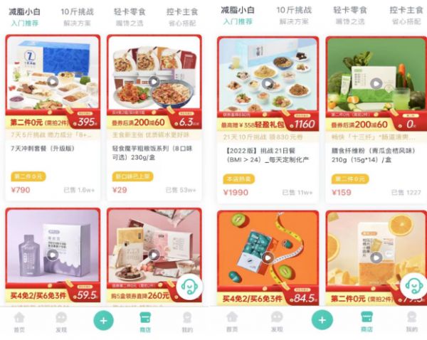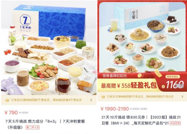 以薄荷健康为例,目前薄荷健康推出了21日的全餐以及7日的冲刺套餐。