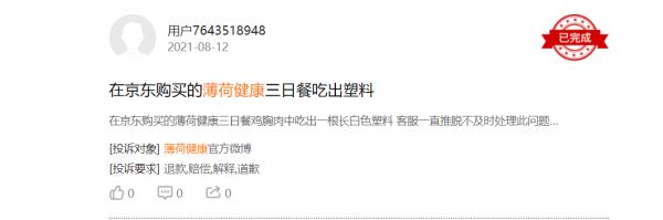 破圈跨界的同时,一些与代餐食品安全有关的问题逐渐被消费者爆出,比如此前有消费者在抖音上传视频,并称购买的薄荷健康代餐产品存在食品安全问题。