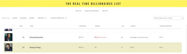 都因抖音太厉害?张一鸣身家超马化腾:跻身全球富豪榜前二十