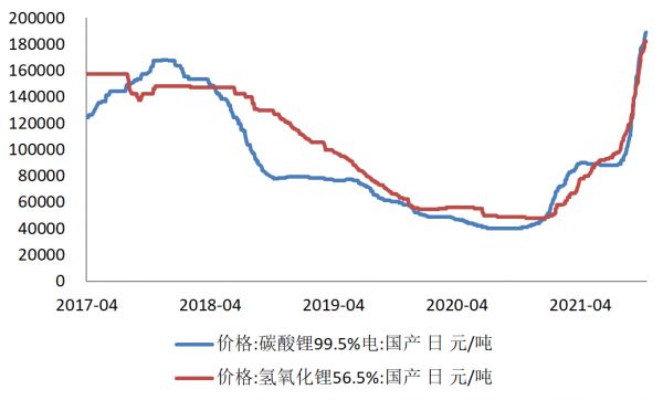 10月假期后,碳酸锂和氢氧化锂的价格双双突破了18万元/吨。