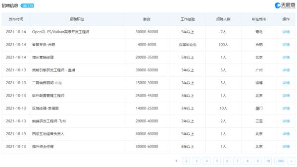 同时,抖音打造的兴趣电商,虽然有着“货找人”的精准投放优势,但无论是短视频的“种草”,还是直播带货的情绪化鼓动,都是建立在消费者思考时间较短的冲动消费基础上,不可避免会出现高退货率和低复购率的问题。打造独立的综合电商平台,可以有效弥补现有的短板,增加消费者主动消费的驱动力,同时也能有效缓解被第三方电商平台“薅流量羊毛”。从天眼查所显示的字节跳动近期的招聘计划中,也能大概看出对构建新电商平台的重视。