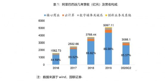 我们先来看看阿里,从其公布的21年半年报中,我们不难发现,阿里正在面临增长瓶颈。从营收组成来看,阿里的核心商业(即电商业务)一直是阿里的主营收入来源。