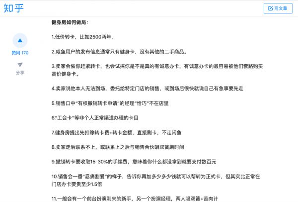 知乎用户@Lincoln在其专题文章中指出,当遭遇骗局提出退款后,健身房代办转卡业务销售,就以「钱到对方账户无法追回」为由拒绝,但此前支付的转卡费正是由其取走。