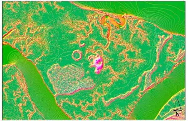 在不触及文化遗迹的情况下精确确定遗迹的位置、形状、大小等。对现已埋没于地表下的古沟渠、古河道或大型建筑物等,在信息丰富的遥感资料上有时能很清楚地反映出来。