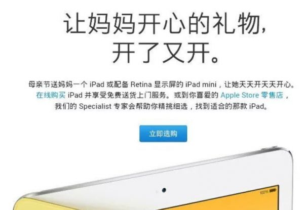 苹果的内地官网文案踩过不少坑,其中最著名地莫过于苹果2014年母亲节的宣传文案“让妈妈开心的礼物,开了又开”,粗略一看觉得没什么,细读后发现整句话的表述怪怪的。苹果的本意是在母亲节里,送苹果产品给母亲让其更开心,但“开了又开”表达很魔性且不够贴切。