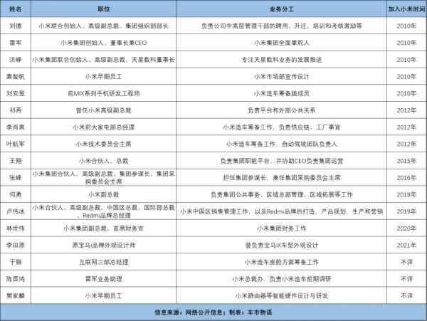 (小米汽车核心骨干一览)