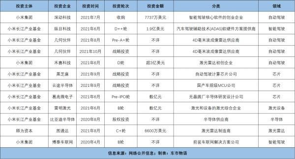 (小米自动驾驶领域投资一览)
