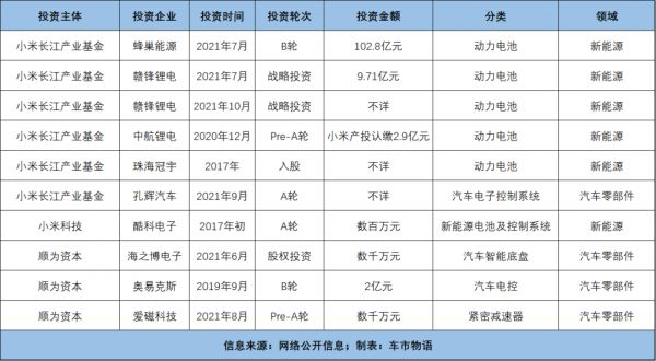 (小米动力电池领域投资一览)